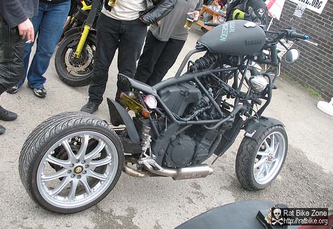 Constructed on next to no budget from bits of GSF900, Reliant Kitten and VFR (I think...?) it's like nothing anybody has ever seen before!