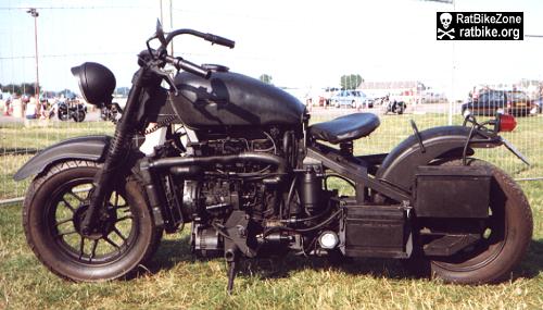 Diesel Survival Bike at the 10th Bulldog Bash, August 2000. 1.6 litre Ford Fiesta engine, Peugeot rear wheel, bits from CX Honda, XS11 Yam, MZ and lots of one-of parts made from scrap metal
